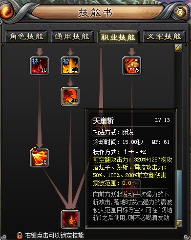 最大伤害技能是天崩斩,加满是320%伤害,比较可观